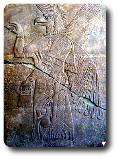 I know that Jay Crisostomo over at mu.pà.da commented on this the other week (and rightly questions whether the image to the left is indeed Nisroch), but I had to post on it as well. I took a class with Barbara N. Porter at Brandeis a few years back, and in that course we viewed many Mesopotamian reliefs while reading Assurnasirpal II’s oft-repeated standard dedicatory inscription. One thing that Dr. Porter always drew to our attention was the pronounced calf muscles on Neo-Assyrian reliefs. In nice to see that someone outside the field notices these things as well.